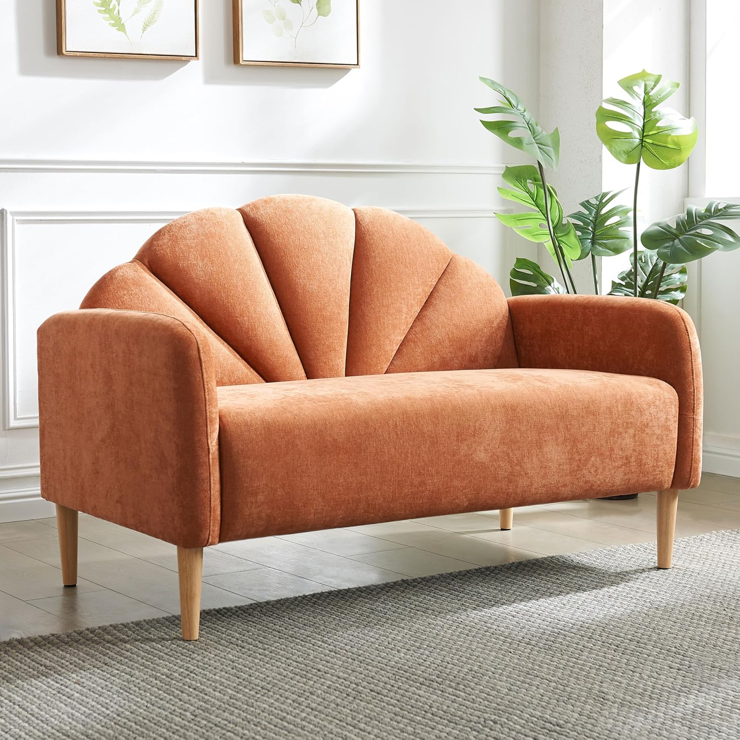 64.37" Modern loveseat Sofa, Linen Fabric Upholstered with Curved Back and Wood Legs, 3-Seater Sofa Couch for Living Room, Small Couch for Small Spaces, Easy Assemlby, Wine Red
