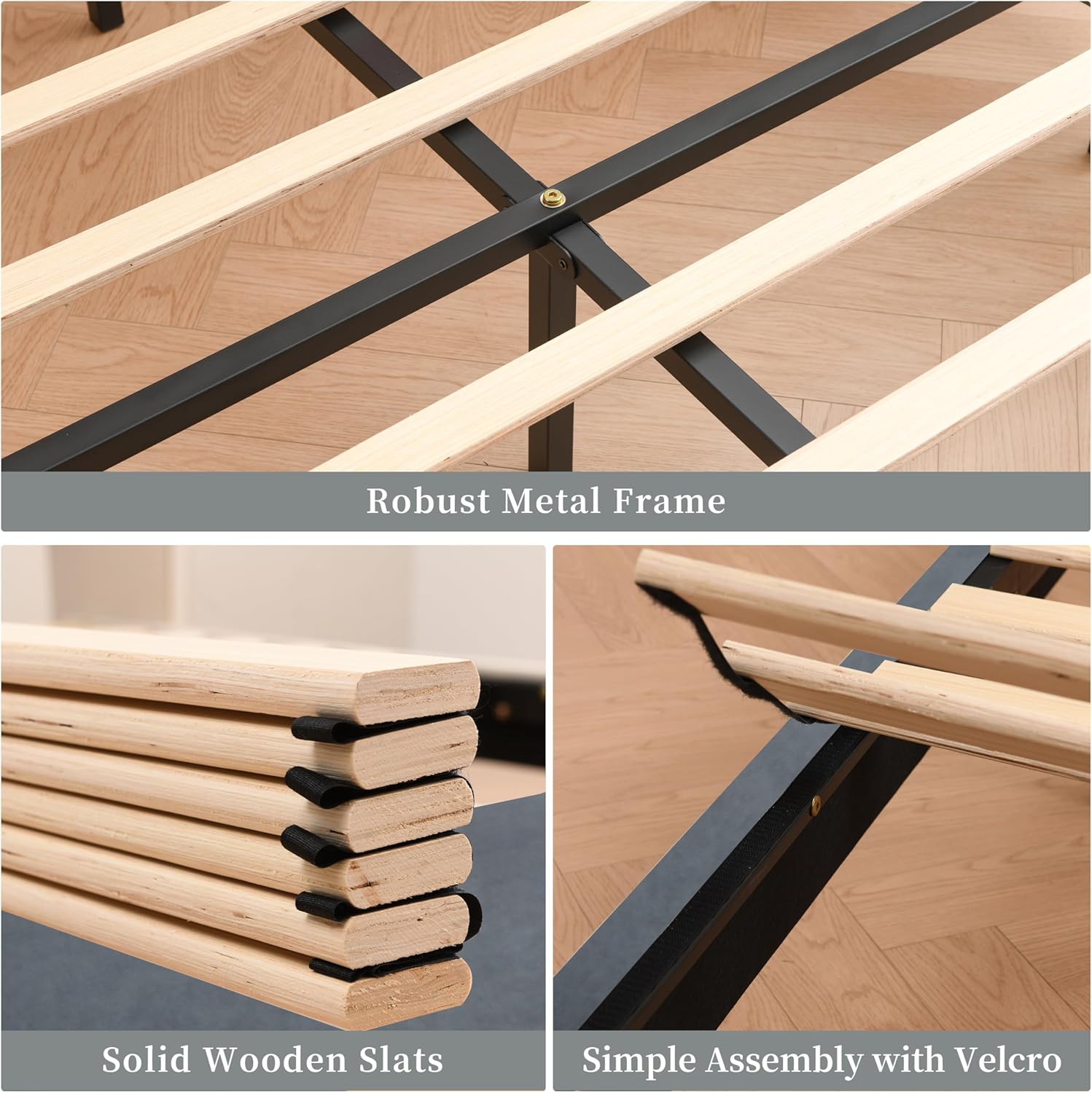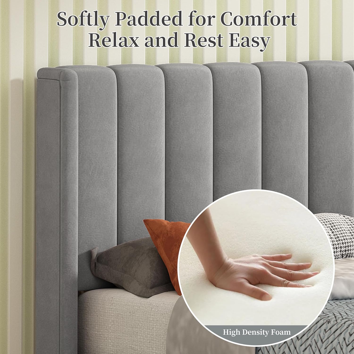 Twin Size Platform Bed Frame with Wingback Headboard, Velvet Fabric Upholsteredand, Metal Frame & Wooden Slats Support, No Box Spring Needed, Easy Assembly, Gray